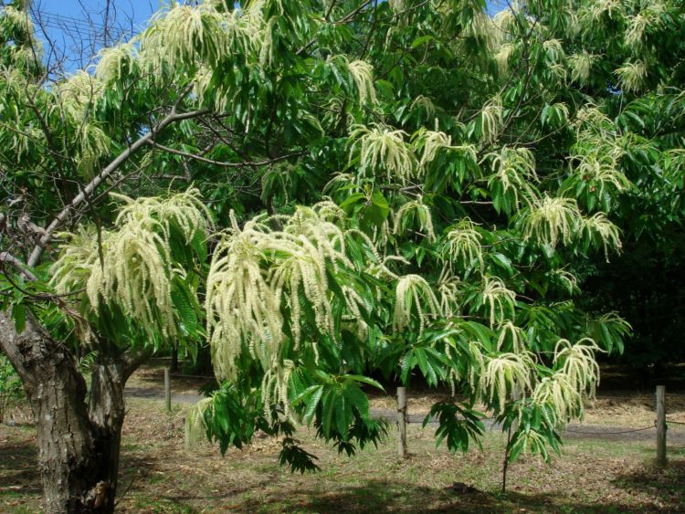 - Плоды: съедобные каштаны, созревают в сентябре-октябре